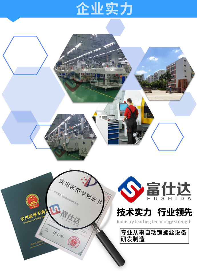 富仕達擁有獨立研發設計團隊,10多位自動化高級工程師,5000㎡自動鎖螺絲機生產、測試車間,專業售后服務團隊,為客戶提供方案設計、設備制造、操作培訓、售后服務等一站式服務。 公司將持續提升技術創新和產品服務方面的優勢,堅持“專業、精工、服務”的企業理念,聚焦于自動鎖螺絲設備生產,通過系統的一站式解決方案,真正的幫助客戶提升效率、降低成本,提升客戶的核心競爭力。